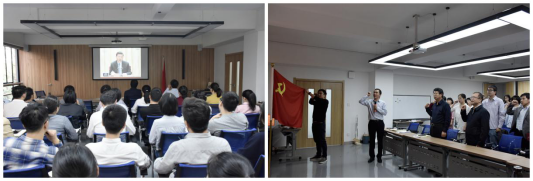 党委副书记袁庆华领誓全体与会党员,重温了入党誓词,大家进行了一次“不忘入党初心、勇担党员使命”的洗礼,促进本次“不忘初心,牢记使命”主题教育取得切实、更好效果。