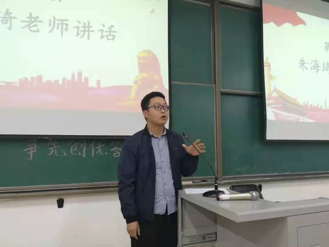最后,朱海琦点明了答辩过程中的不尽人意之处,如展示内容、答辩节奏、语速语调,,内容准备等,告诫大家需要认真准备。同时,他从守初心、抓落实、找差距三方面向大家提出要求,希望大一的学生更应注意找差距,学习榜样的力量。